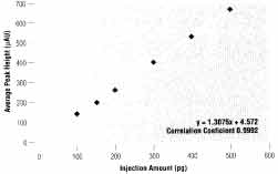 表2. 低样品含量的峰高精度