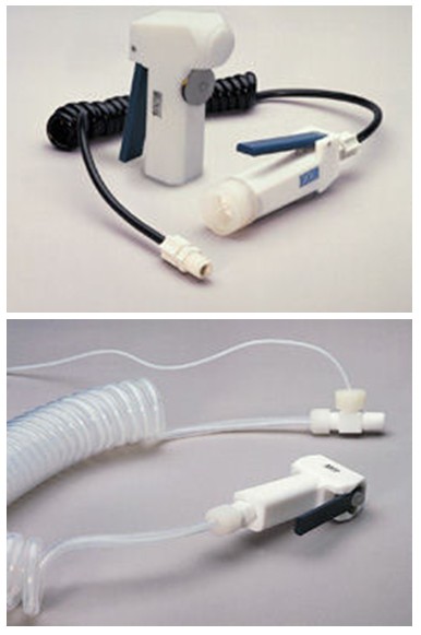 针对不同用水需求,有PTFE和PP两种材质的水枪,及PFA和PP伸缩管,可在距离主机3米内取水。水枪末端可选配0.22µm终端过滤器,取水时能有效的去除微生物和颗粒物。 |