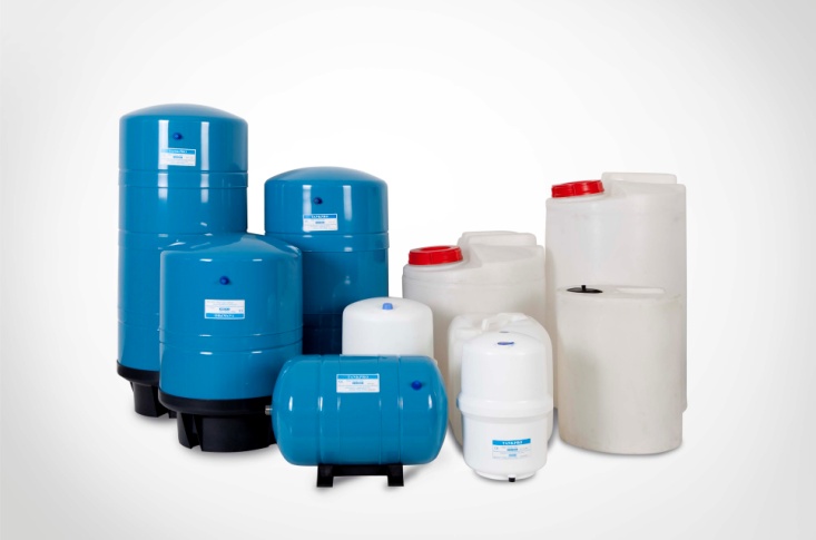 压力储水桶 采用密闭全真空结构,有效防止空气中的CO2及其他污染物进入纯水中。容量分为12升、15升、40升、75升和100升,满足用户大量用水的需求。