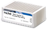 Sep-Pak96孔提取板都经过多方面的质量控制检测。每一块板都有一个分析证书,包括硅胶原料和硅胶键合相键合密度、洁净度和色谱选择性的性能报告。提取板经制造和测试确保96个孔流速恒定。