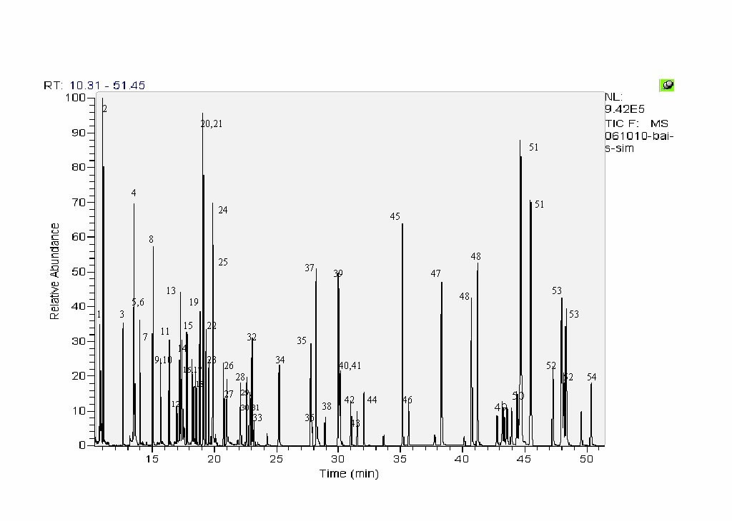 图3 黄桃添加回收GC-EI-MS SIM谱图